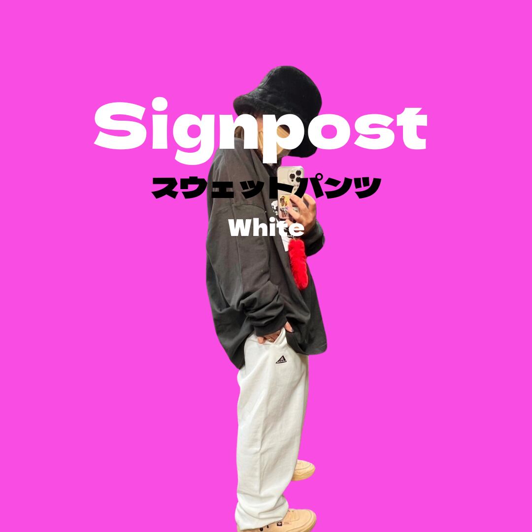 ワンポイントにSignpostロゴが入っており、ちょっとそこまでの時や普段着でも着られるスウェットパンツです◎