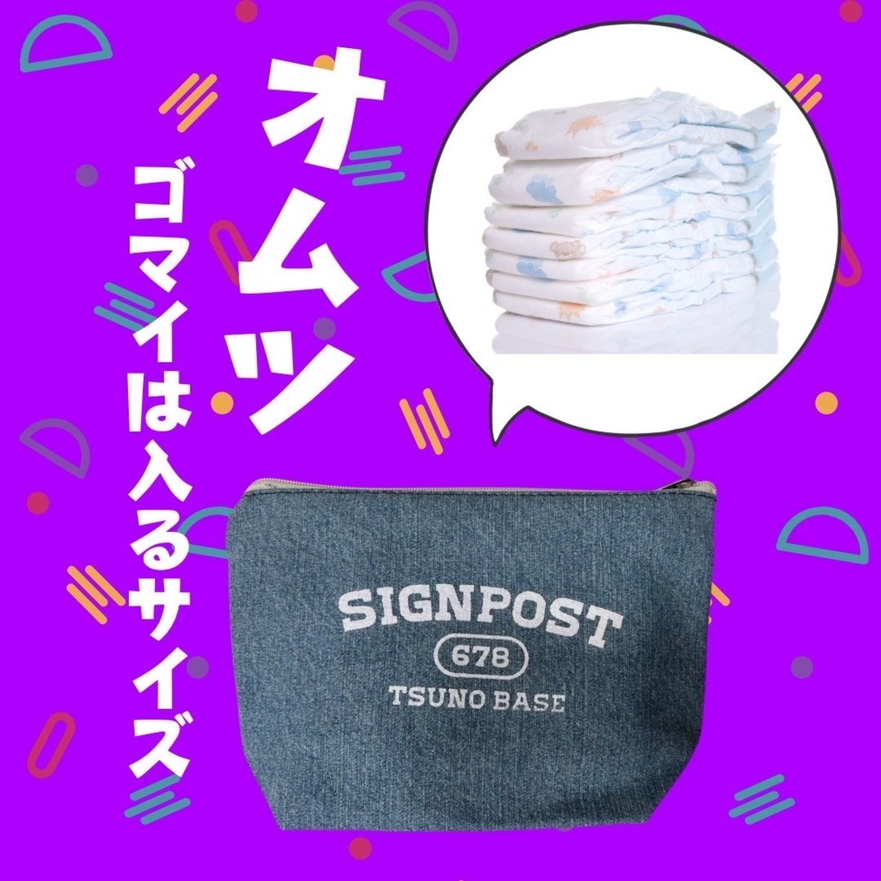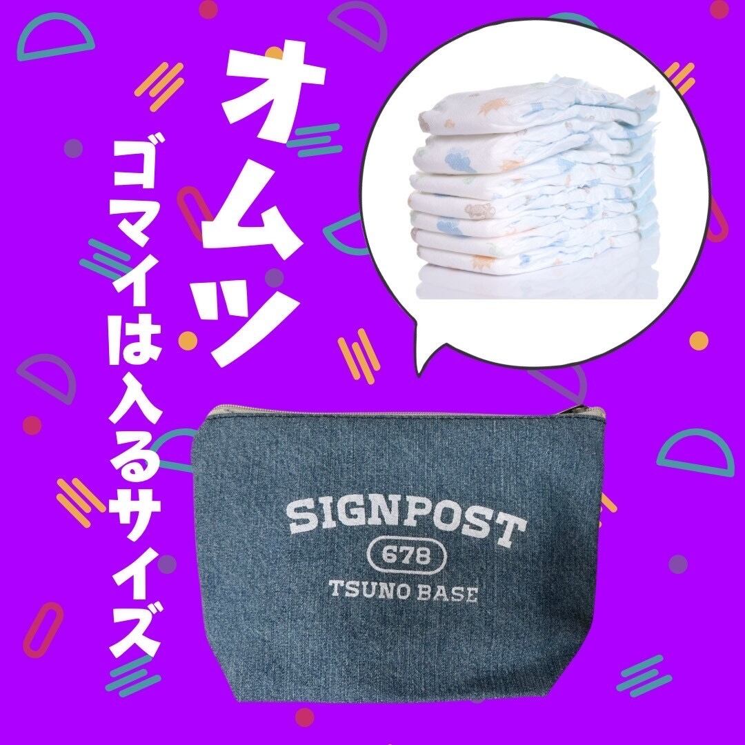 オムツが5枚入るサイズの大きめデニムポーチ。